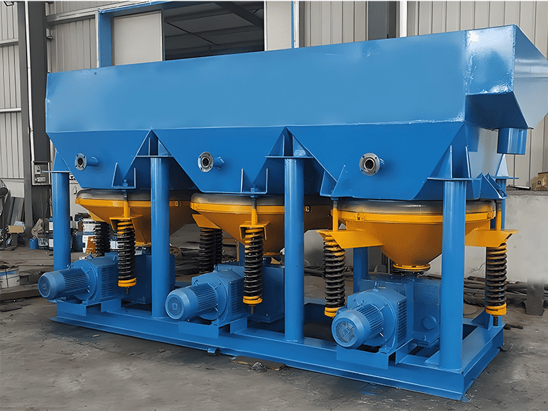 跳汰機的工作原理是在垂直交變的介質流(水或空氣)的作用下,利用礦物原料的比重差異實現分層。在跳汰過程中,比重較大的礦物沉降至分選槽的下層,形成重礦物或精礦;比重較小的礦物則浮升至上層,成為輕礦物或尾礦。通過專用的排料系統,這兩種不同比重的礦物層被分離,分別排出以獲得精礦和尾礦。跳汰機在連續運轉中不斷接收新原料,實現礦物的持續分層和分離,形成一個連續的跳汰選礦過程。
